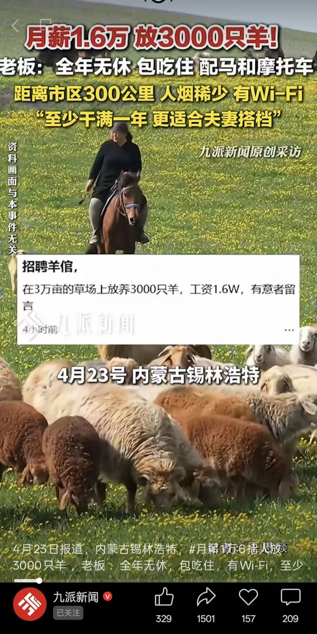 原标题:《月薪1.6万元放羊引热议,先别急着“羡慕哭了”!》