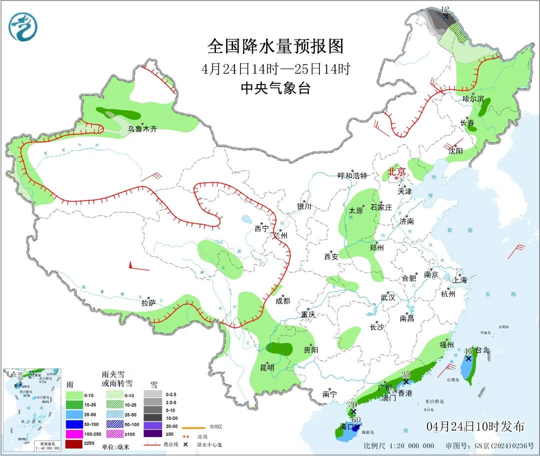 农业生产方面,国家气象中心农业气象中心高级工程师李祎君提示,南方此次降雨间歇期为农事活动提供了有利窗口,24日至25日江南和华南地区应尽快完成早稻移栽,过湿田块及时排涝降渍。24日至27日,河南中南部、山东西南部、江苏和安徽淮北及陕西关中等地应抓住无降水时机开展冬小麦赤霉病防治,陕西南部、湖北北部及苏皖沿淮以南地区应在首次药剂防治后5至7天及时进行二次防治;北方大风天气频繁,设施农业和简易牲畜棚圈掀棚风险较高,需提前做好温室大棚和圈舍防风加固。至4月末,东北地区中北部降温雨雪天气影响春耕春播作业进度。