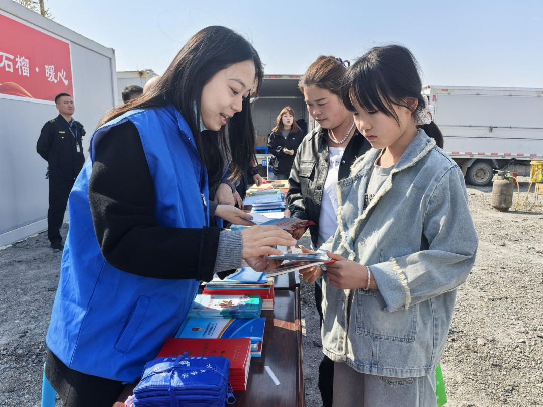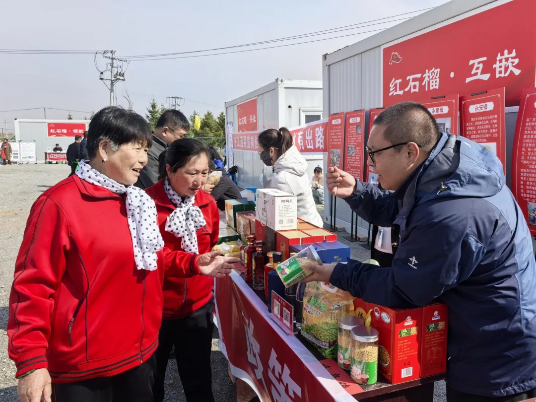 “红石榴・启智”展区内,群众共同绘制民族团结百米画卷,科普宣传活动也同步进行,寓教于乐中培育了中华民族共同体意识。而在“红石榴・兴业”展区,特色农产品展销和零工市场服务吸引了大量群众咨询,劳务品牌的宣传更是为群众增收共富提供了新思路。