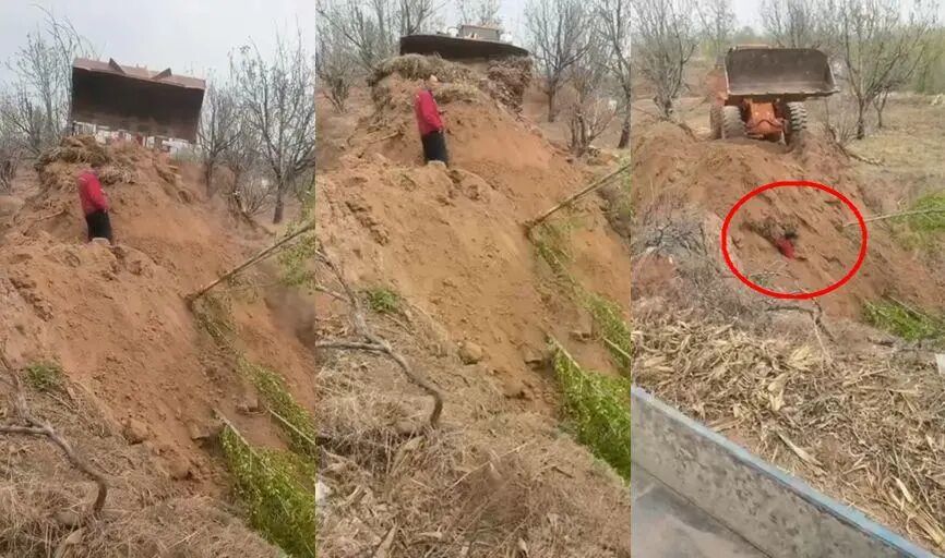 据新京报报道,近日,一则“山西代县卸任村干部驾铲车推土掩埋村民”的视频引发广泛关注。视频中,一名红衣村民被泥土掩埋至头部、右臂,一旁停有铲车。