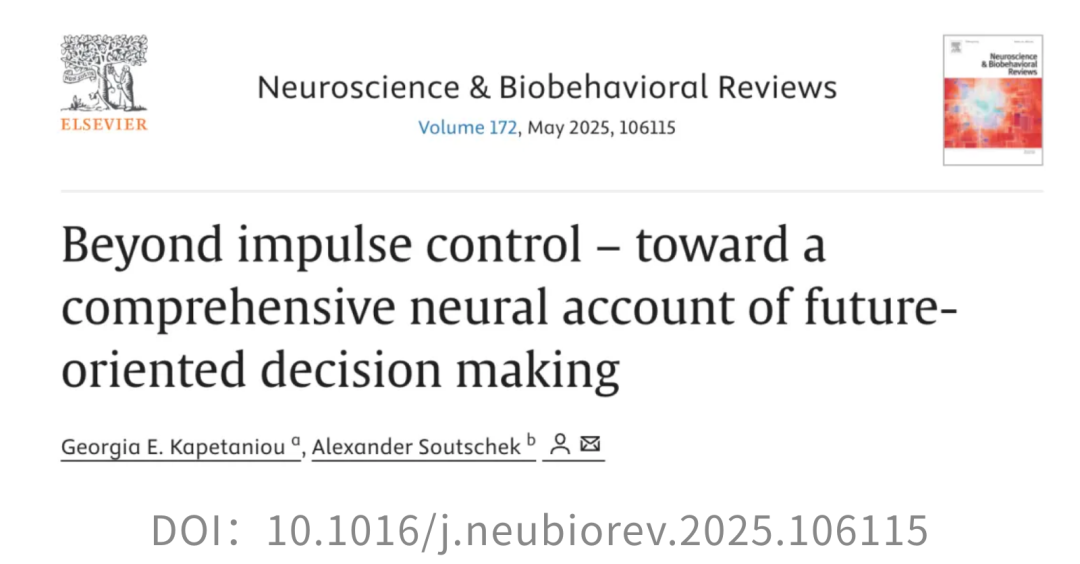 [3]Kapetaniou, G. E., &Soutschek, A. (2025). Beyond impulse control – toward a comprehensive neural account of future-oriented decision making. Neuroscience &Biobehavioral Reviews, 172, 106115. https://doi.org/10.1016/j.neubiorev.2025.106115