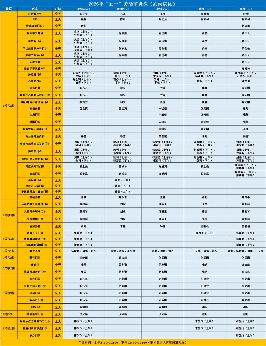 2026年5月9日(周六)安排周二医师出诊。节假日期间基层转诊、肿瘤急诊患者请到武侯院区肿瘤急诊就诊。