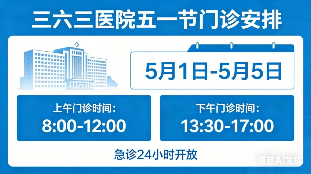 2026年劳动节假期(5月1日—5月5日)即将来临,三六三医院提前统筹部署,全力保障节假日诊疗服务不停歇。