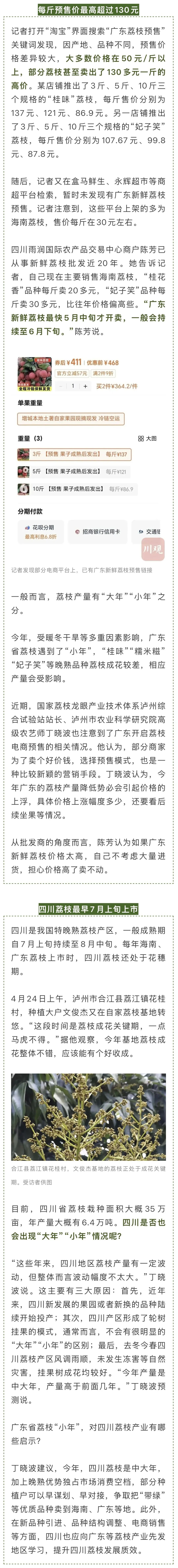 原标题:《每斤预售超130元!今年荔枝贵到“吃不起”?四川荔枝何时上市?》