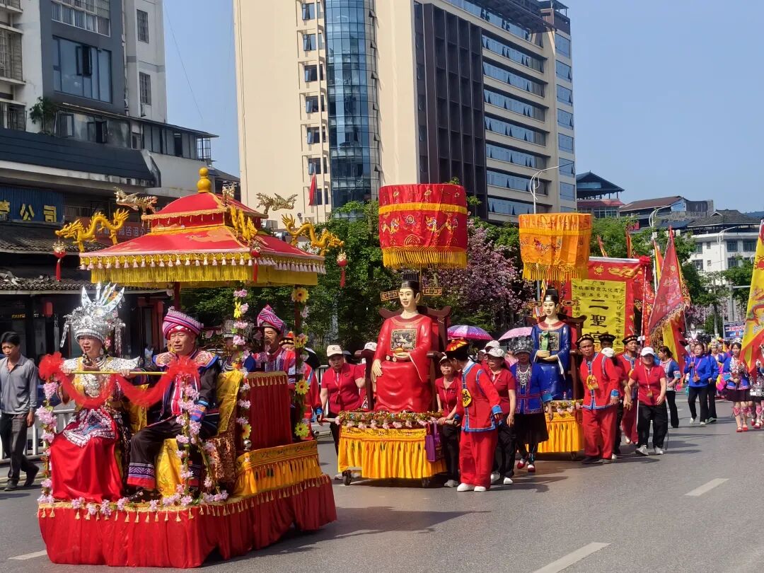 三江侗族自治县举办“潮起三月三·最炫侗乡情”古宜镇第156届花炮节活动。民俗巡游、非遗展演、竞抢花炮轮番上演。