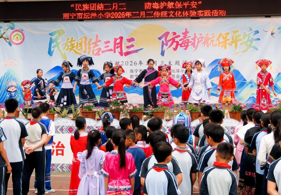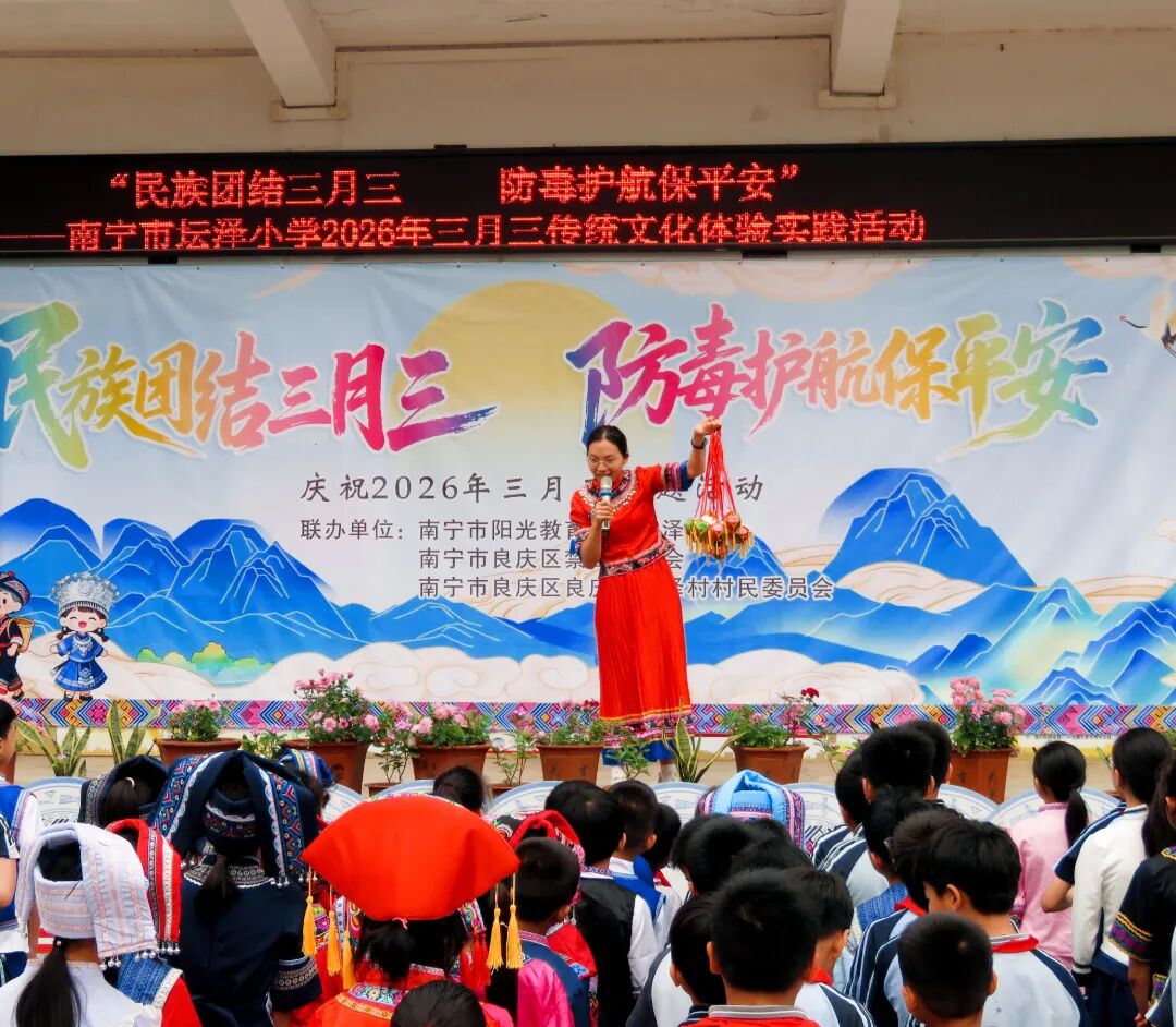 良庆区禁毒委员会联合坛泽小学、良庆镇坛泽村村民委员会,举办主题为“民族团结三月三,防毒护航保平安”的传统文化体验暨禁毒主题宣传教育活动。