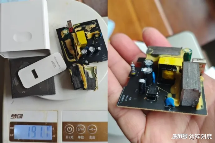 网友拆开杂牌120W充电器发现商家用铁块伪装手感