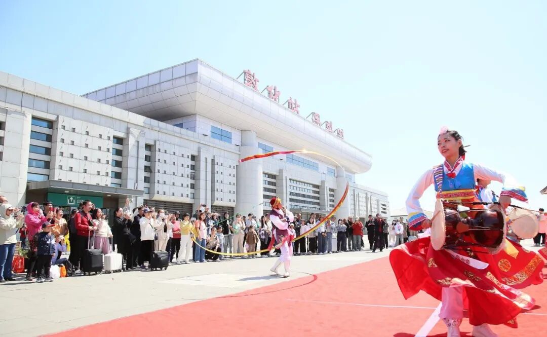 活动内容:“五一专列·奔赴‘吉享’”旅游专列抵达敦化期间,市文广旅局在火车站精心举办温馨欢迎仪式,现场开展特色歌舞展演与主题快闪活动,组织志愿者为游客发放文旅宣传手册、全面推介敦化优质文旅资源与特色产品,以热情周到的暖心服务,诚挚迎接八方游客。