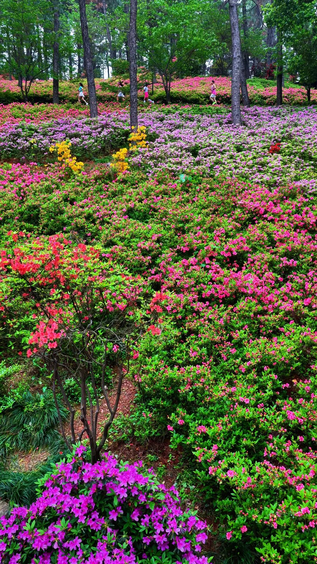 杭城春事正盛,四月顶流杜鹃花开遍野。除了富阳、临安等地的野生映山红红透半边天,余杭塔山公园、临平公园的杜鹃花谷更是美出“莫奈花园”既视感。