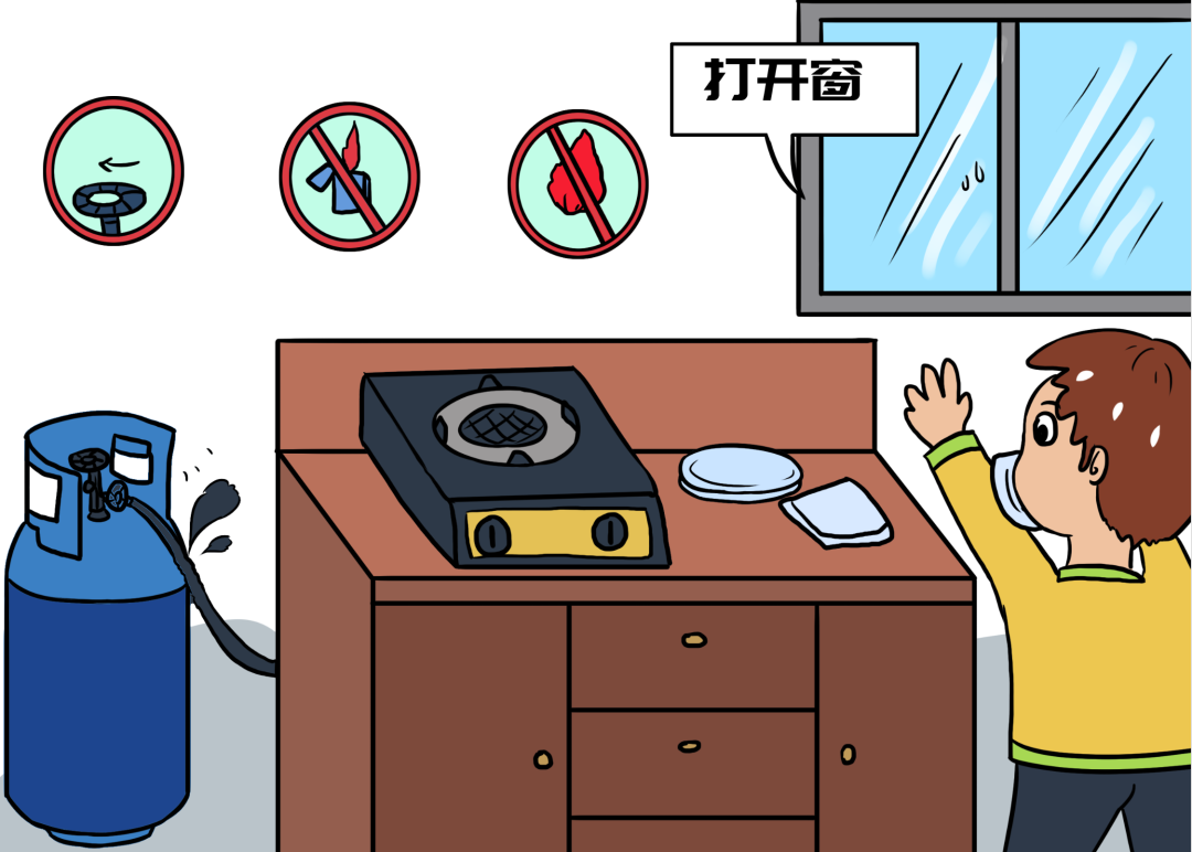 七、发现燃气泄漏时,要迅速关闭气源,打开门窗通风,不触动电器开关,不使用打火机等明火进行燃气泄漏检查。