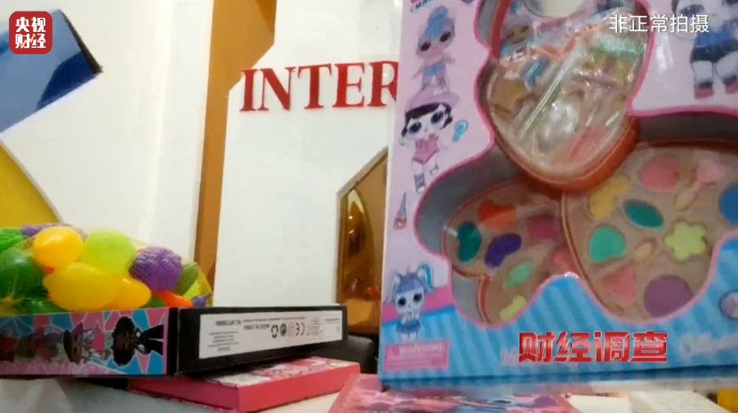 记者从网络上买到了几款“三无”彩妆套盒玩具,根据快递盒上的信息发现,发货地集中在汕头市澄海区。在澄海知名的宝奥国际玩具城内,记者在一家万基国际玩具店内,同样见到了没有中文标识的“三无产品”。