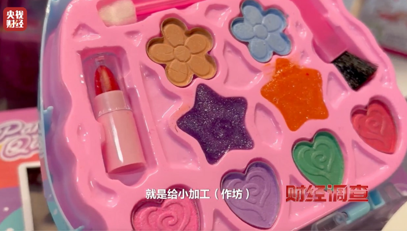 更让人难以置信的是,销售人员告诉记者,他们工厂销售的这些三无儿童化妆品玩具的核心部件,也就是会接触儿童皮肤的粉碟、膏体,竟然是一些小作坊代工生产的,与国家要求的十万级洁净生产车间相去甚远。