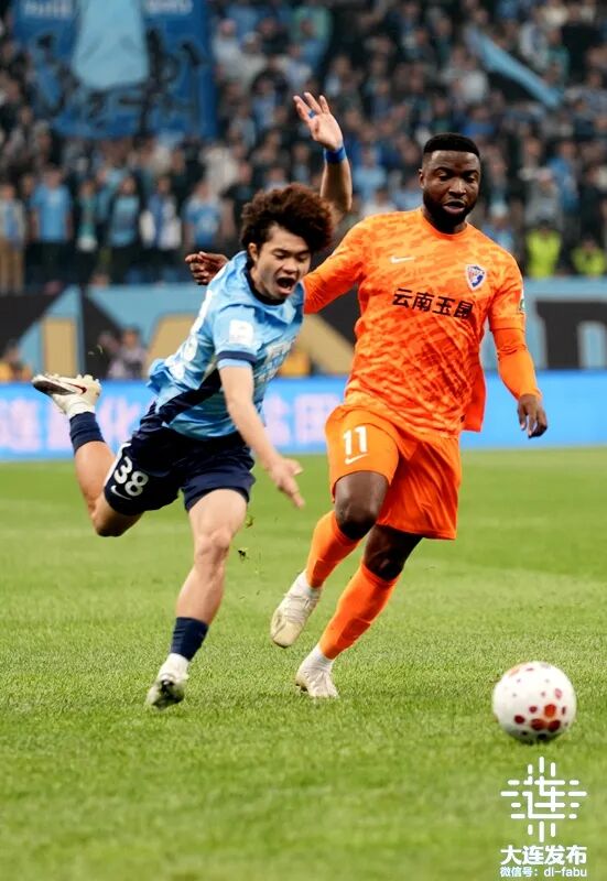 上半场结束,大连英博海发0:3落后云南玉昆。
