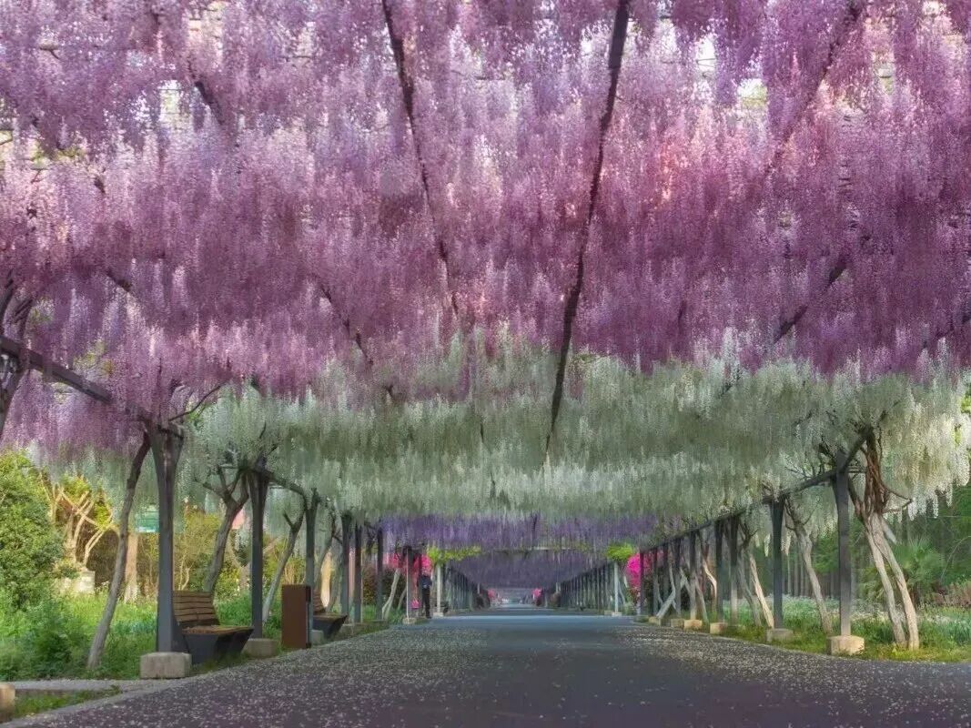 紫藤长廊的最佳观赏期为4月中旬至5月初,此时花穗盛放,是打卡游玩的最佳时机。