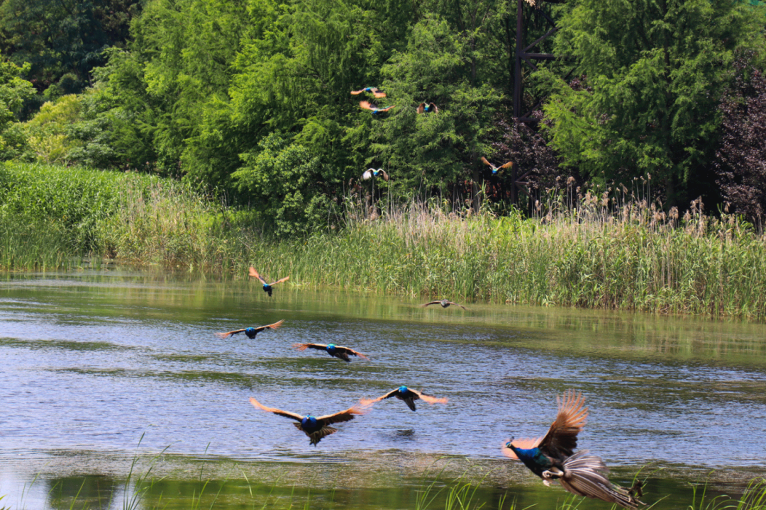 除了紫藤长廊,公园内还有多个必打卡点位:鹿乐苑可观看小鹿巡游,免费投喂互动;孔雀园每日有孔雀放飞,抓拍开屏瞬间绝美。
