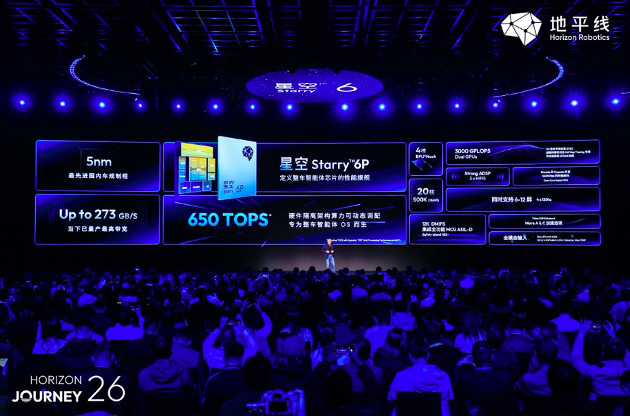 星空芯片的核心价值是“一芯多用”。传统汽车的智能驾驶与智能座舱,需要两套独立的芯片和软件系统,不仅增加了车企的硬件成本,还存在跨域协同效率低、响应延迟等问题。星空芯片采用5nm工艺,BPU算力达650 TOPS,内存带宽273 GB/s,用一颗芯片取代了传统的两套系统。