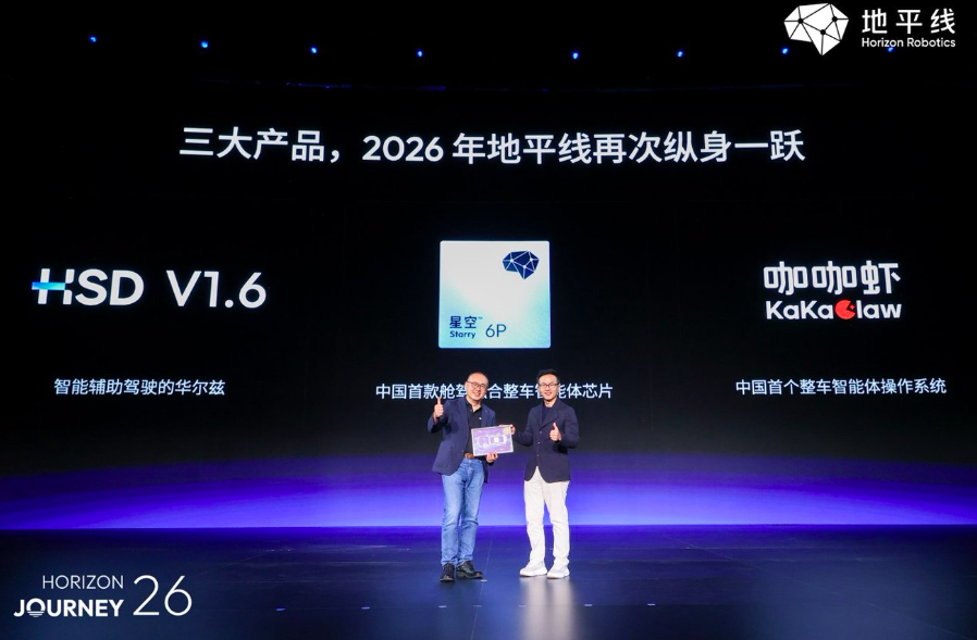 当智能汽车逐步向通用人工智能靠近,底层计算平台的重构成为行业破局的关键。近日,地平线以“征程无垠,驭见星空”为主题举办2026年度产品技术发布会,创始人兼CEO余凯不仅公布了关于自动驾驶与物理AI的三大战略判断,更带来了中国首款舱驾融合整车智能体芯片“星空(Starry)”、中国首个整车智能体操作系统“KaKaClaw咖咖虾”,以及HSD辅助驾驶系统1.6版本的升级。