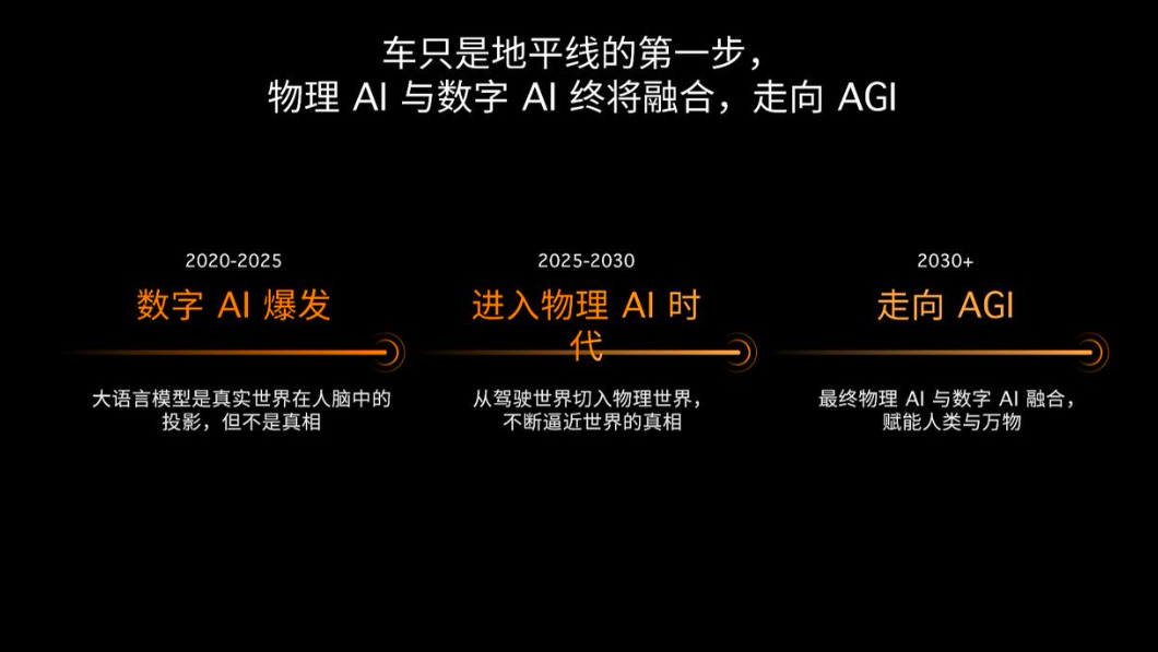 第三个判断是,物理世界的人工智能与数字世界的人工智能,最终会融合,朝着通用人工智能(AGI)的方向发展。
