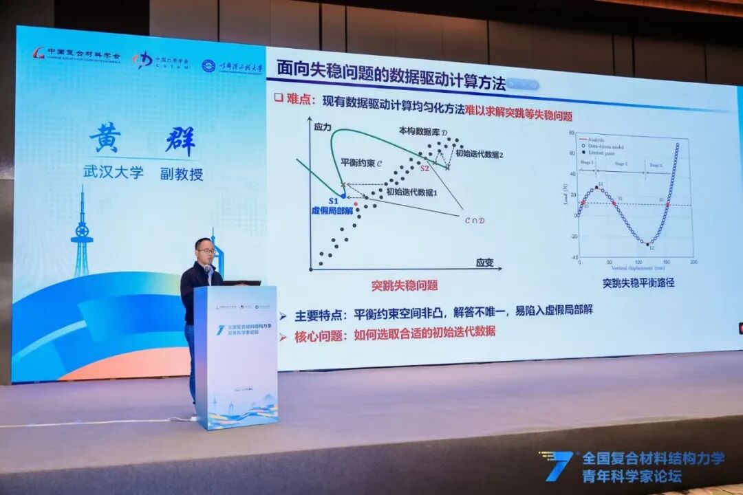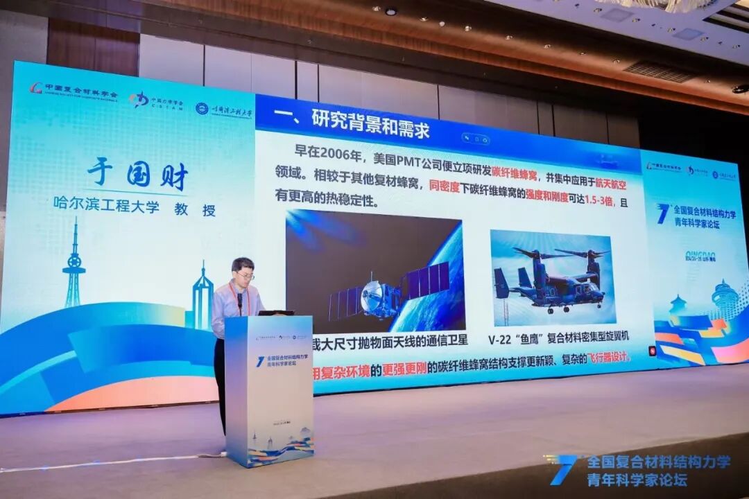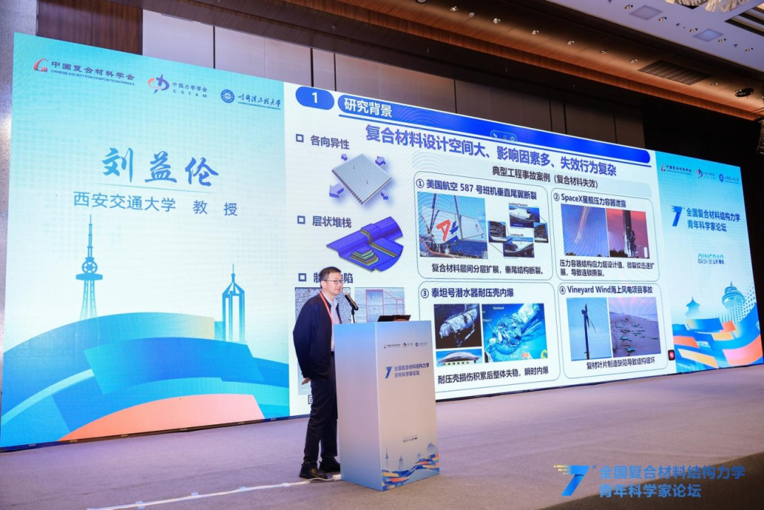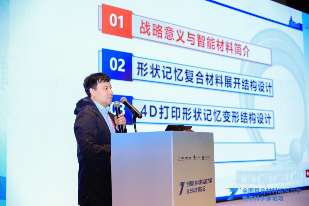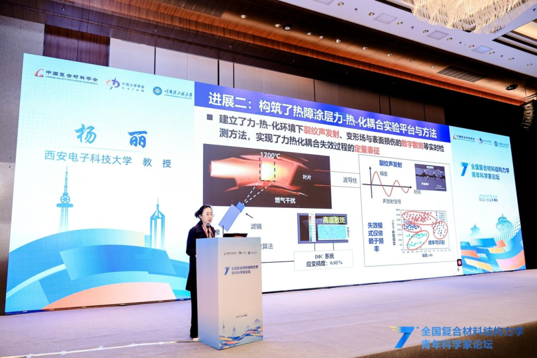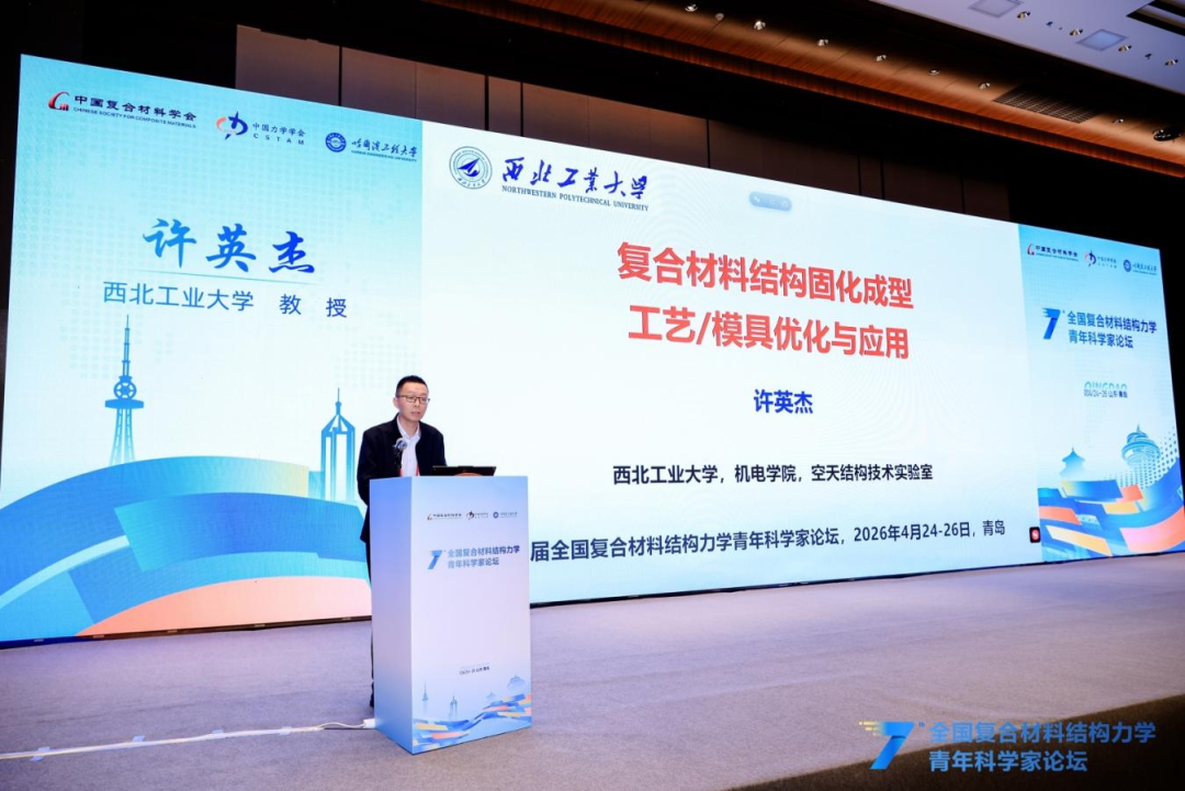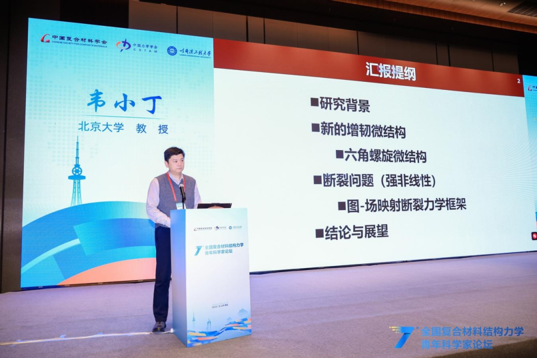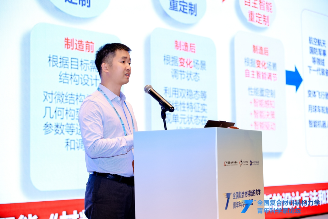 本次论坛还特别邀请北京大学韦小丁教授、哈尔滨工业大学刘立武教授、西安交通大学刘益伦教授、西安电子科技大学杨丽教授、西北工业大学许英杰教授、清华大学柳占立教授,分别围绕基于仿生微结构设计的复合材料强韧化、形状记忆智能复合材料结构设计与验证、AI赋能复合材料结构设计-分析-制造全流程一体化、超高温铪钽碳涂层及其服役行为、先进复合材料结构固化成型工艺与模具优化及工程应用、连续变梯度结构化材料的冲击能量捕获设计等主题,向与会青年学者作精彩分享。