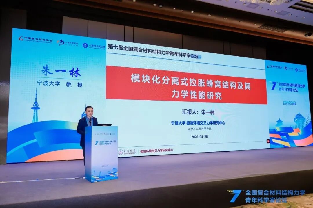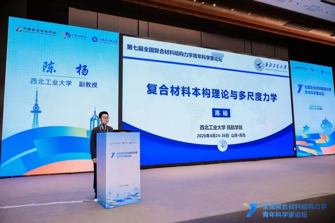 2026年4月24日至26日,第七届全国复合材料结构力学青年科学家论坛在山东青岛成功举办。本届论坛由中国复合材料学会、中国力学学会、哈尔滨工程大学联合主办,中国复合材料学会青年工作委员会、中国力学学会青年工作委员会、哈尔滨工程大学航天与建筑工程学院、哈尔滨工程大学青岛创新发展基地共同承办;以促进青年学者科研方向交叉创新、服务国家重大战略需求、推动复合材料工程应用转化为核心目标,旨在形成复合材料力学基础研究与工程实践的高效联动。会议共有260余位来自各高校、科研院所、行业企业的复合材料力学领域科技工作者参加,共交流专题报告28篇、会议论文72篇,全面展现了我国复合材料力学领域青年科研队伍的整体实力与学术活力。
