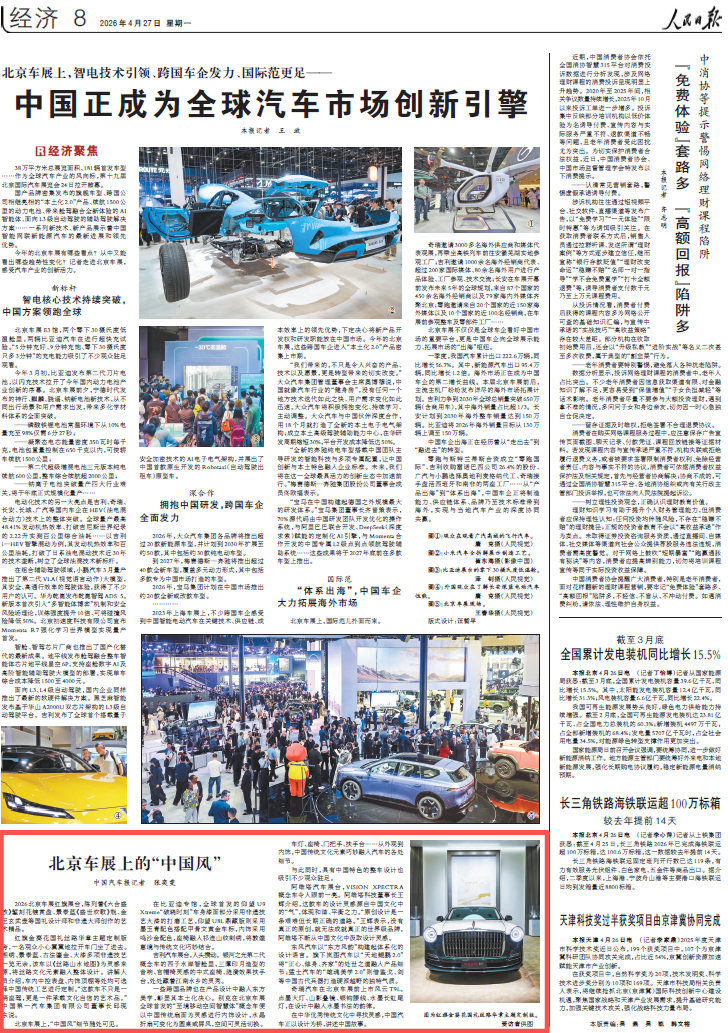 中国汽车报记者 张奕雯《人民日报》(2026年04月27日 第 08 版)