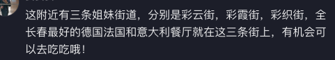 更令人欣喜的是,市民自发成为了“城市导游”。有网友详细推荐:“这附近有三条姐妹街道,分别是彩云街、彩霞街、彩织街,全长春最好的德国、法国和意大利餐厅就在这三条街上,有机会可以去吃吃哦!”这种由内而外的自豪感,胜过任何精心策划的广告。