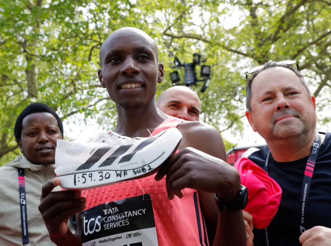 4月26日举行的伦敦马拉松赛上,来自肯尼亚的萨维以1小时59分30秒的成绩打破男子马拉松世界纪录。