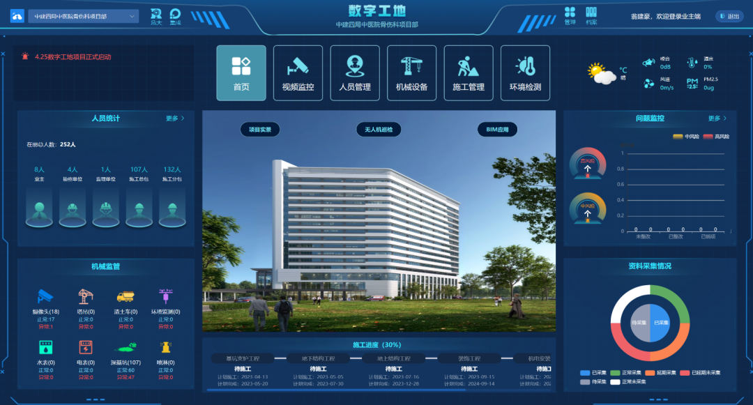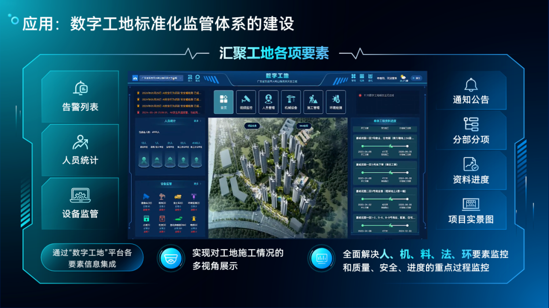 平台构建“现场、平台、参建单位、监管部门”协同体系,整合人、机、料、法、环全要素,实现线上高效协同管理。