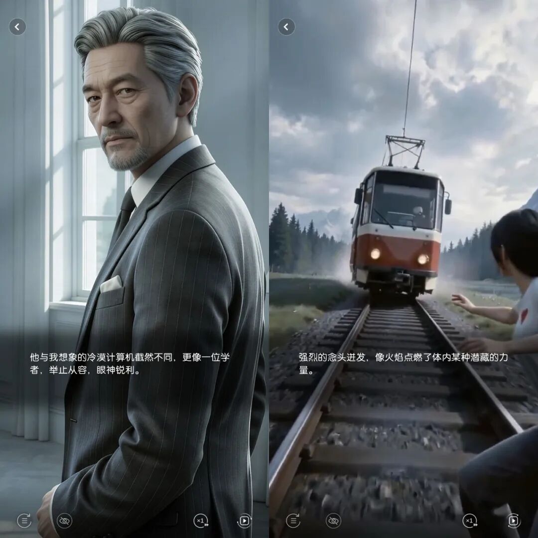 更不靠谱的是公测从3月推迟到4月,直到上线当天都状况不断,因算力问题延迟开服、多次停服,并且有明显瑕疵:AI依旧会胡言乱语,生图能生出三只手和双头狗。剧情动画简陋,分辨率和人脸一样不能统一,经常不打招呼就过渡成PPT,还不如AI漫剧精致。