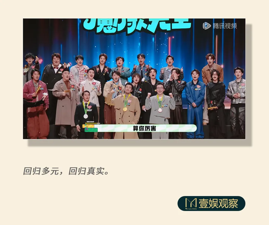 《魔力歌先生》一改综艺对于男性群像呈现的单一模版,尊重多元、回归真实表达,重新组建起了一个有魅力的全男音乐人群像。