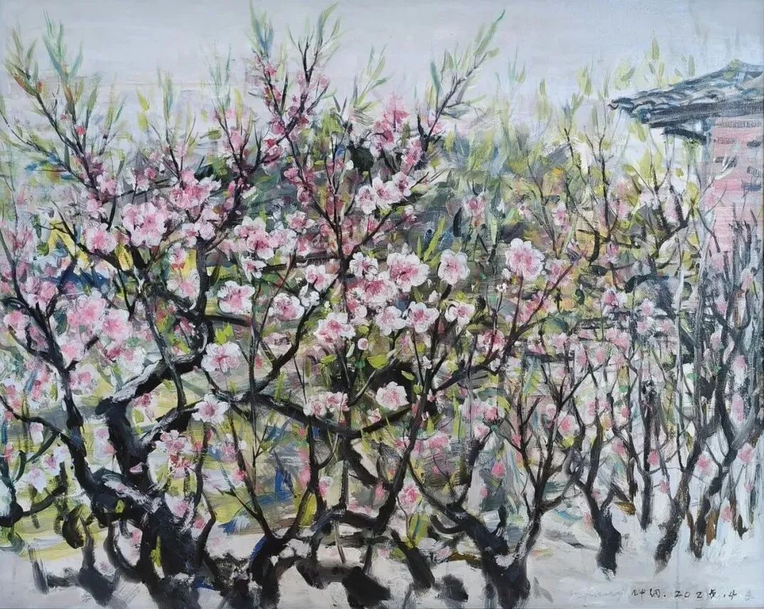钟纲《桃色庭芳》80cm×100cm 2025