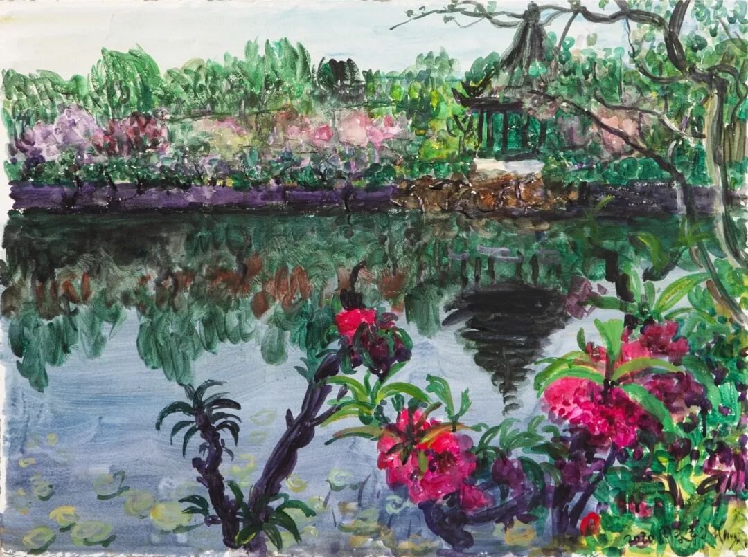 周春芽《无锡蠡园一景》纸本丙烯 77cm×58cm 2020年