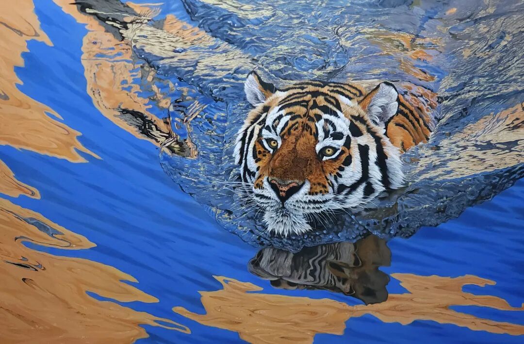 马可《金虎戏波》100cm×120cm