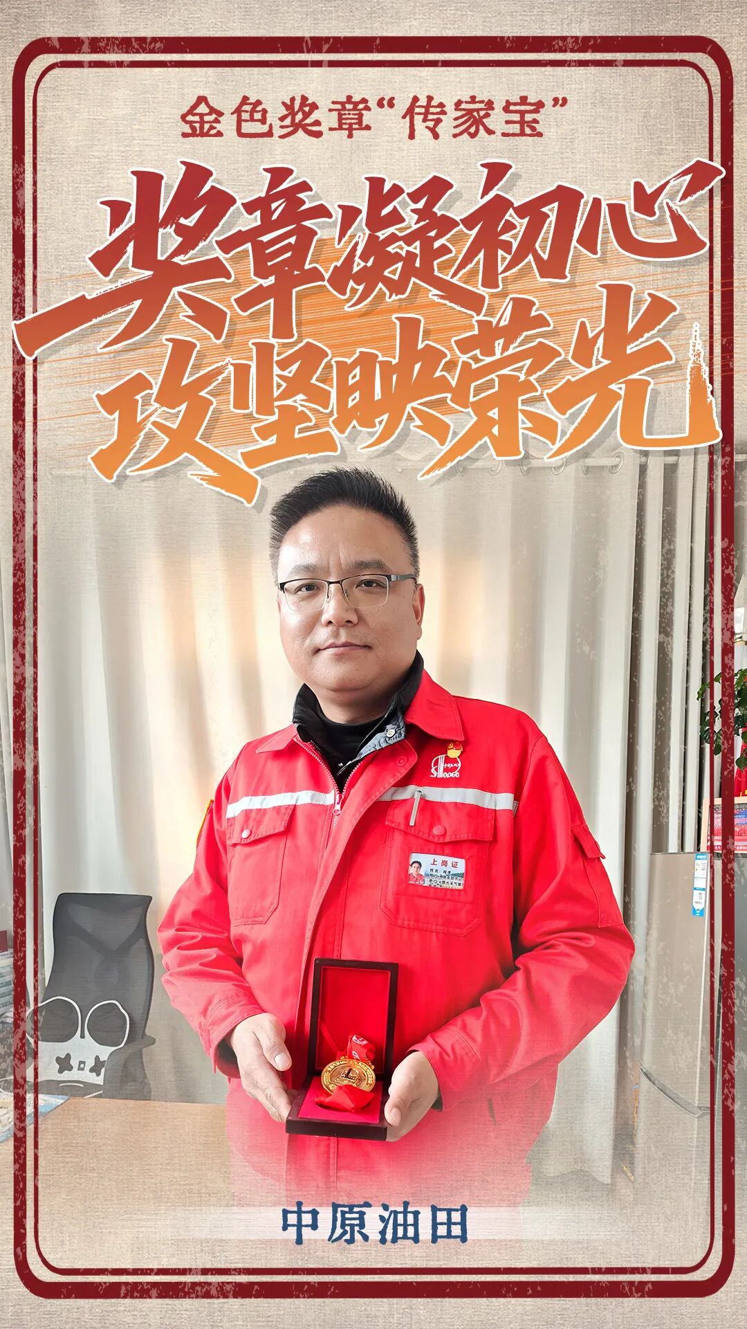 这是一枚印着“中国石化二等功”字样的金色奖章,红绸绶带上的烫金字迹依旧清晰。它是我在2007年普光气田开发建设拓荒阶段,作为首批建设者代表,与团队共同斩获的中国石化集体二等功荣誉,是普光气田初代建设者踏荒而行、并肩攻坚的珍贵见证。这枚奖章,它镌刻着2007年首批普光建设者“踏荒拓路、向难而行”的集体记忆,见证着一群人用汗水和坚守,在川南山野间埋下了普光气田发展的种子。如今,它静静躺在礼盒里,却像一面镜子,映照出一代代普光人传承至今的攻坚精神。