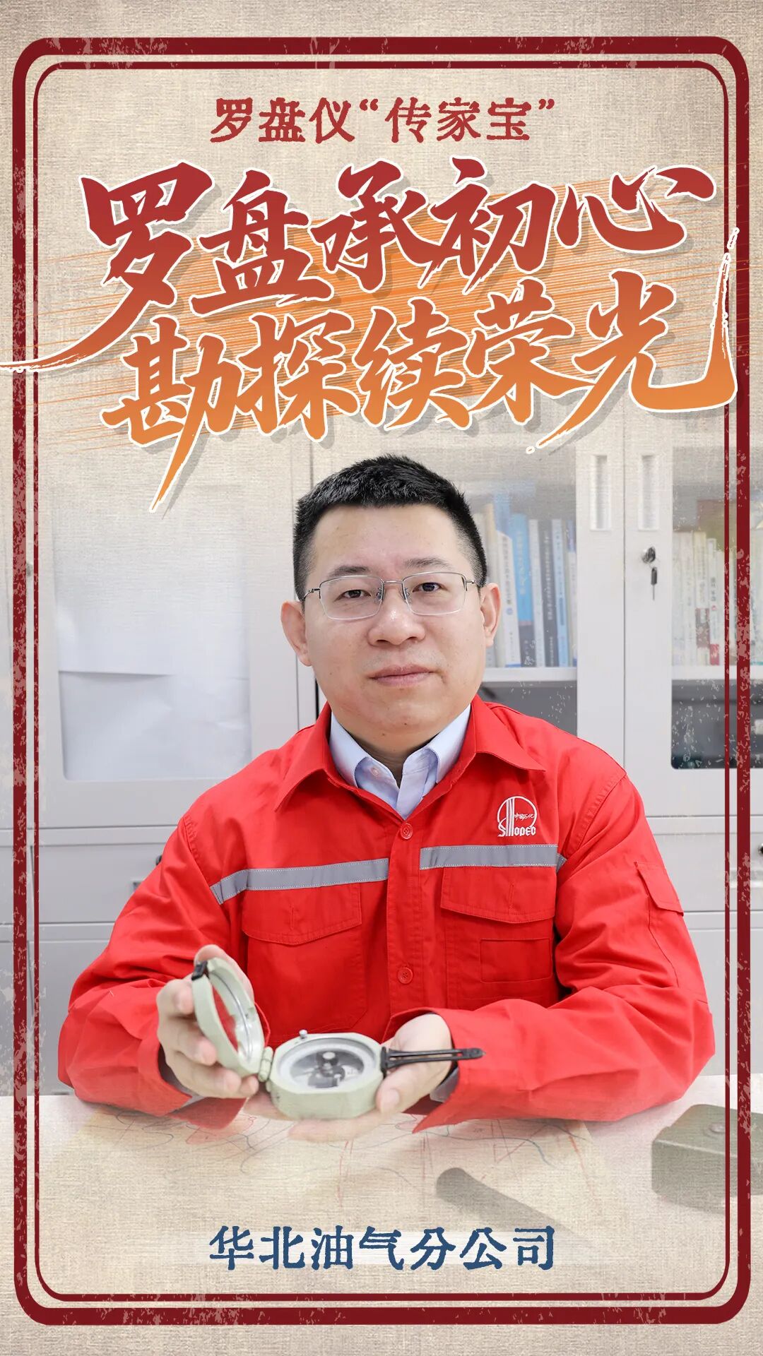 这是一枚1992年北京地质仪器厂制造的青绿色地质罗盘仪,壳体上泛着岁月的温润光泽,指针依然能精准指向方位。这枚老物件曾伴随勘探队员的脚步深入鄂尔多斯盆地北缘,在毛乌素沙漠的风沙中辨明方向,见证了鄂尔多斯盆地北缘从“死亡之海”到“产气之滨”的蜕变,承载着华北石油人数十载的天然气勘探征程。对我而言,它是华北石油人奋斗的缩影,是勘探精神的具象传承,不断指引后来者在找油找气的征程上不断前行。