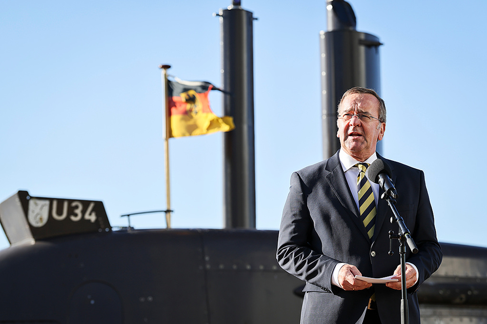当地时间2026年4月22日,德国国防部长鲍里斯·皮斯托里乌斯在访问潜艇制造商TKMS期间发表声明。视觉中国 图