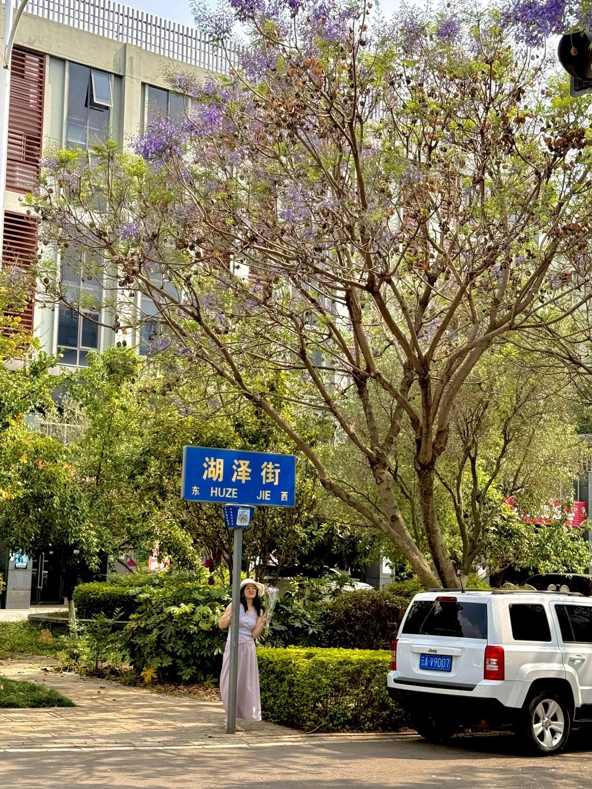 湖泽街:天然的紫色凉棚