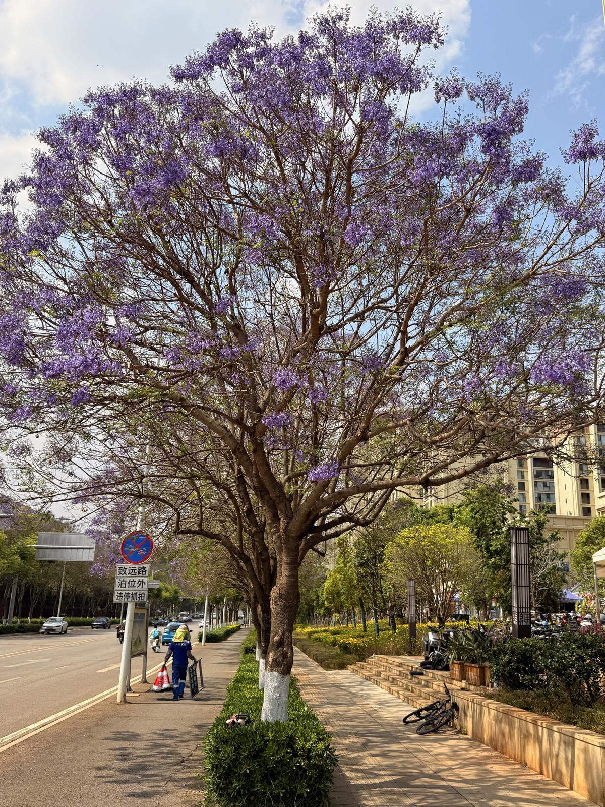 相较于热门打卡点,此处蓝花楹花量不算繁盛,但地理位置绝佳,交通便利,无需专程奔波,非常适合路过顺路踩点、日常随手拍照,轻松捕捉城市小众紫色浪漫。