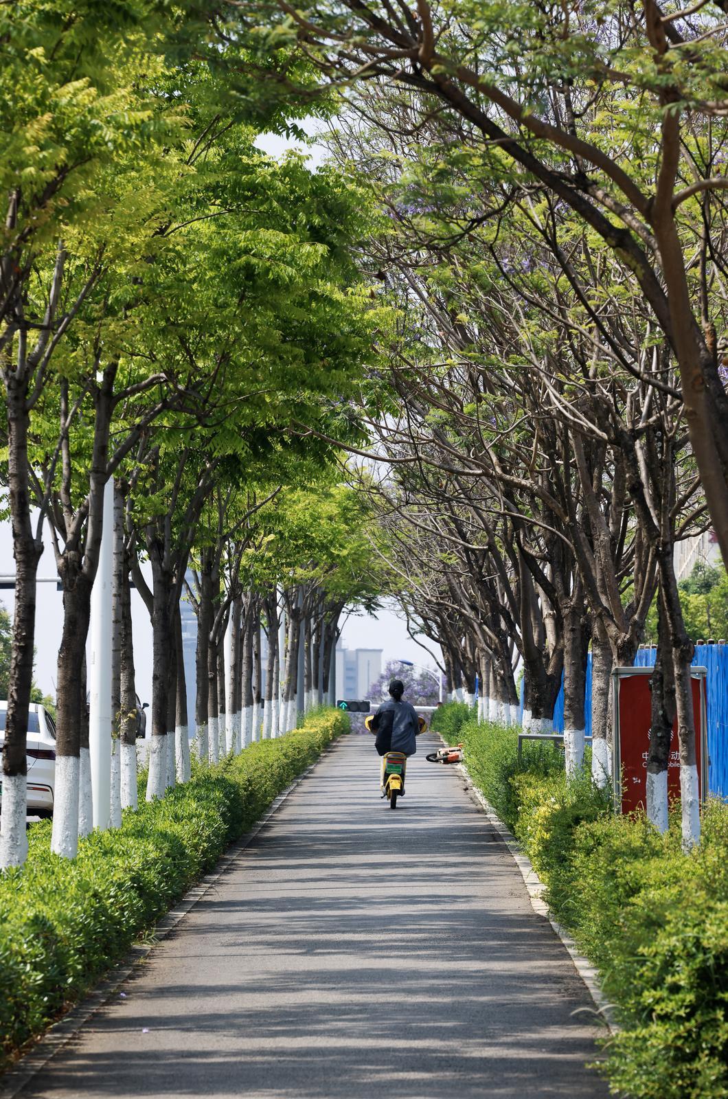 打卡点位地处非机动车道,拍摄时需全程靠边停留,切勿占道、扎堆或站在道路中央取景,避免阻碍车辆行人通行。文明观赏、安全拍照,用心守护街巷自然美景,留住初夏限定浪漫。