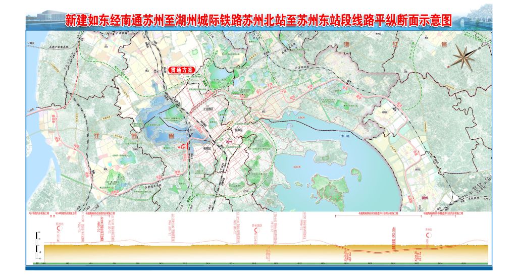 如通苏湖城际铁路是国家《长江三角洲地区多层次轨道交通规划》明确的近期建设项目,也是长三角近沪地区城际纵向骨干线路,苏州北站至苏州东站段全长约34.9公里,设苏州北、苏州园区、苏州东3座车站,设计速度160公里/小时。