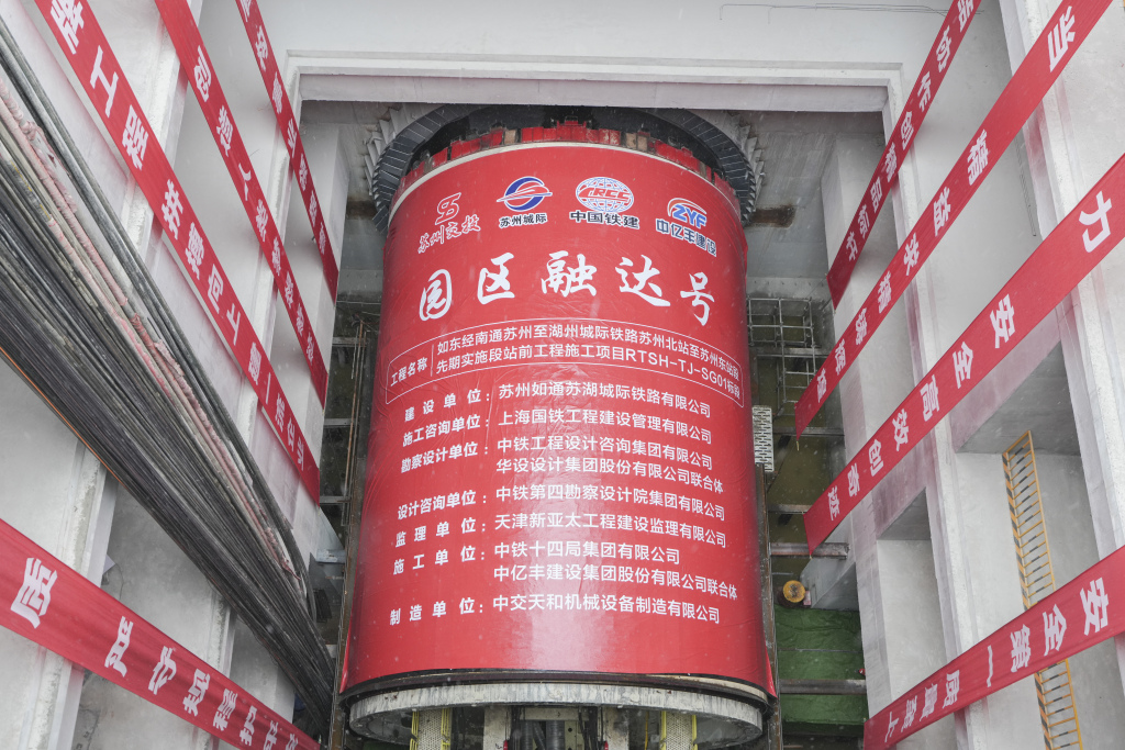 如通苏湖城际铁路苏州北站至苏州东站段先期实施段施工01标首台盾构机“园区融达号”始发