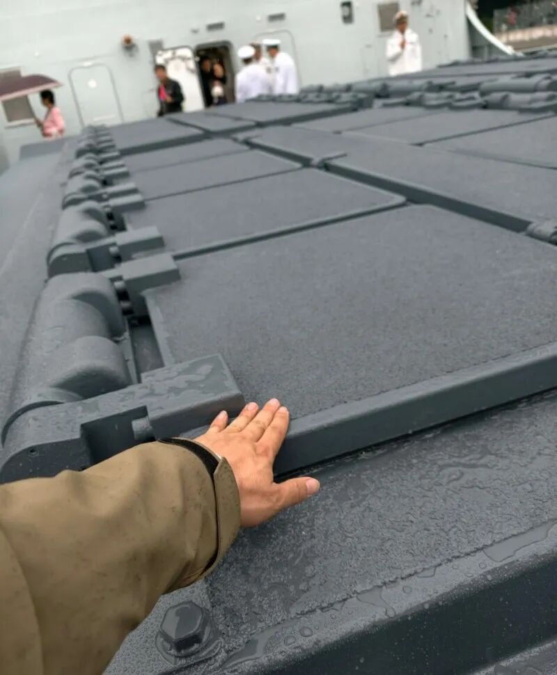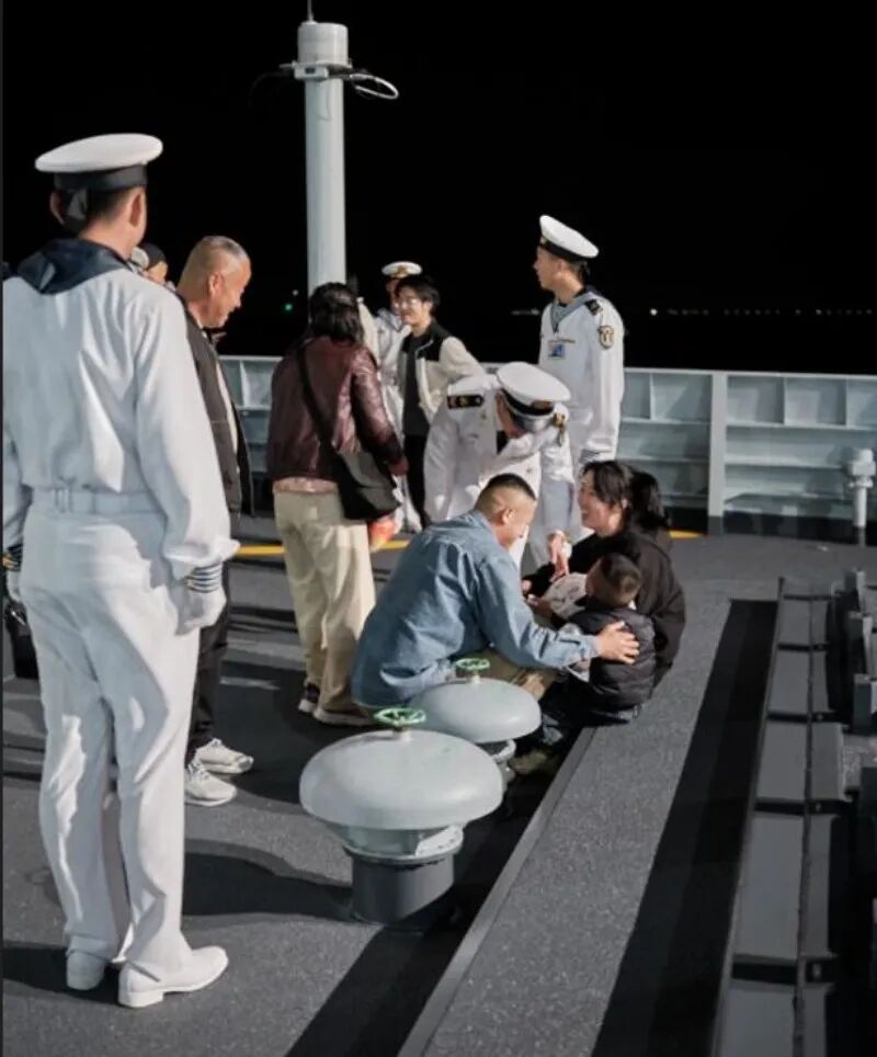 当然事实证明在开放的军舰上临时设置母婴室并不是一种杞人忧天,而是要么想得周全要么有过历史经验教训。在从舱内走到前甲板时,看到有一家子带着小孩坐在宿州舰的垂发上,在妈妈怀里的小孩子不知怎么哭了起来。由于哭闹一直止不住并且动静有些大,宿州舰上的水兵以及军官们都围上去看看能不能做点啥,甚至还有水兵商量着要不要去厨房拿点东西来给孩子吃。其中一个年轻水兵看起来挺喜欢孩子,一直笑着帮家长们哄孩子。当然说给海军朋友听后,朋友笑着骂道:男兵瞎凑什么热闹。