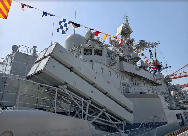 现代级标志性的马弹圆桶已经换成了鹰击12/15的方型发射筒