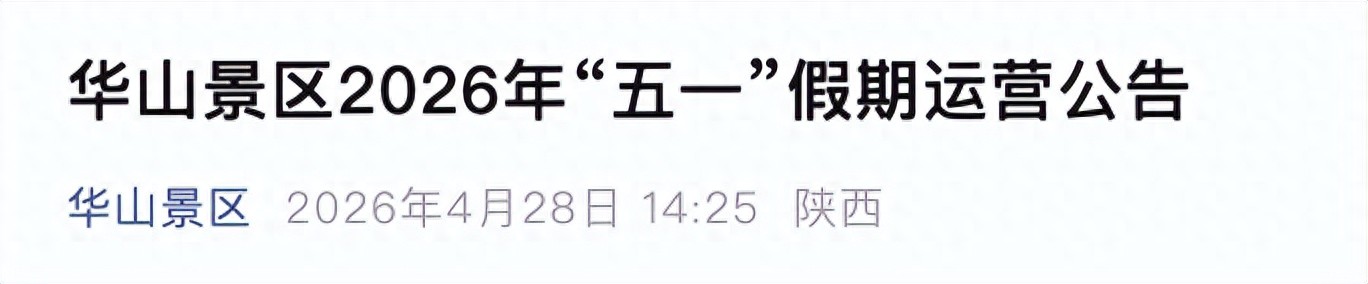 五一期间,华山景区成人门票实行半价优惠,优惠后价格为80元/人次。已按原成人门票价格预约购买5月1日至5月5日华山景区门票的散客,可正常检票游览。景区将在5月8日前,通过原购票渠道发起成人门票活动差价退款,具体到账时间以支付平台和银行处理时间为准。