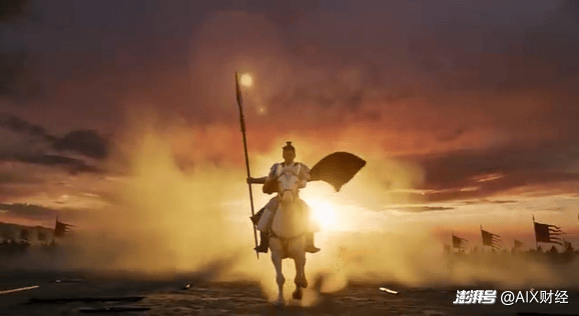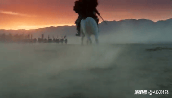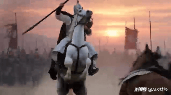 6-10秒:近景特写。将军回首一望,目光坚毅决绝,缰绳一带,白马长嘶人立,他低头看了一眼怀中婴孩,随即扬枪策马,冲入更深的尘烟之中。镜头定格于他冲入尘雾的背影。