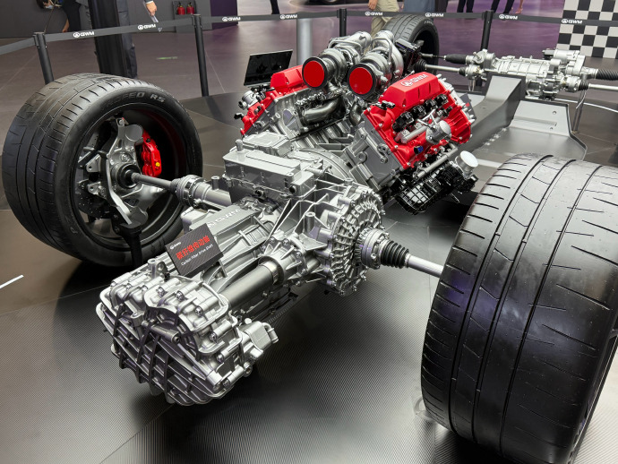 这里面的重点必然是这台4.0T 中置国产大 V8 ,据说加上电机混动,综合马力能超过 1000 匹。有一说一,燃油赛车更能体现国产品牌的含金量。