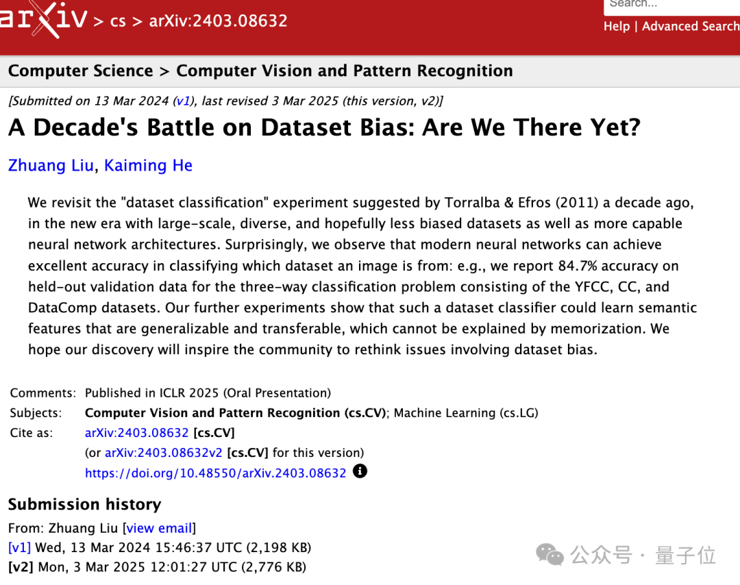 他和何恺明做了一个实验:训练神经网络来判断一张图片来自哪个数据集。