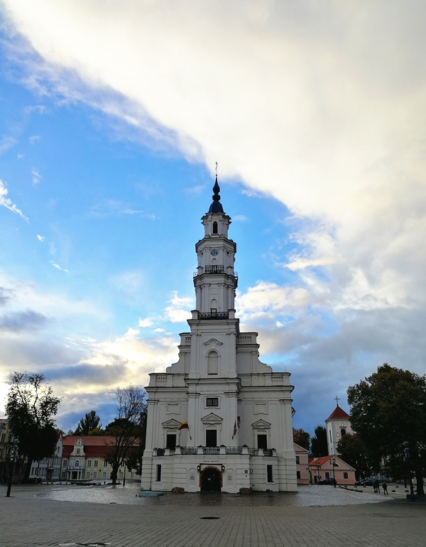 考纳斯最美的地方,无疑是市政厅广场。这是一个砖石广场,雨后痕迹在阳光下缓缓消失。被称作“白天鹅”的前市政厅占据C位。