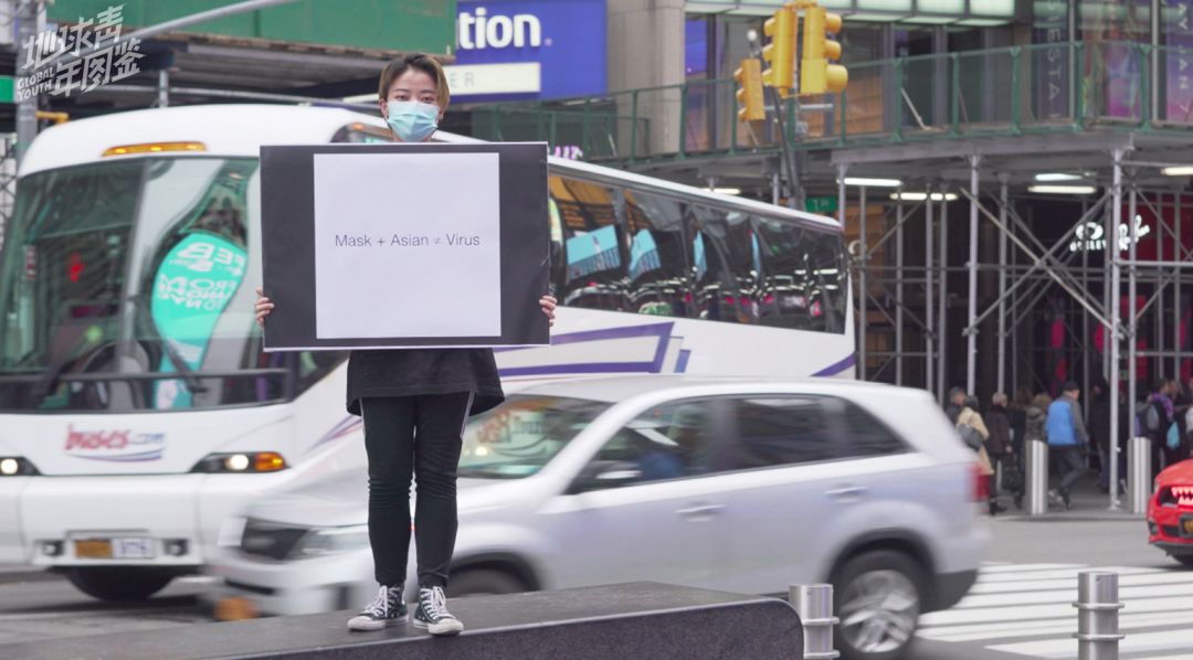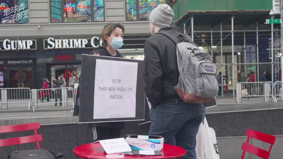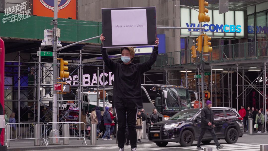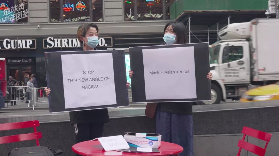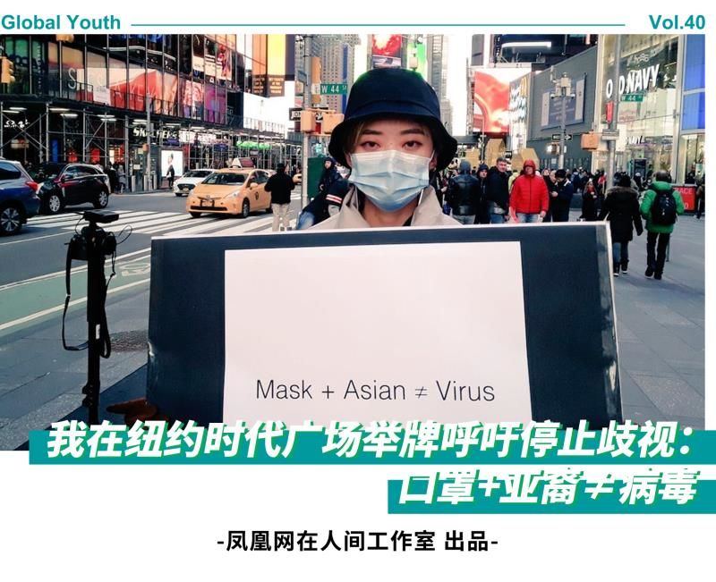 戴口罩被歧视后,我在纽约时代广场举牌:口罩+亚裔≠病毒