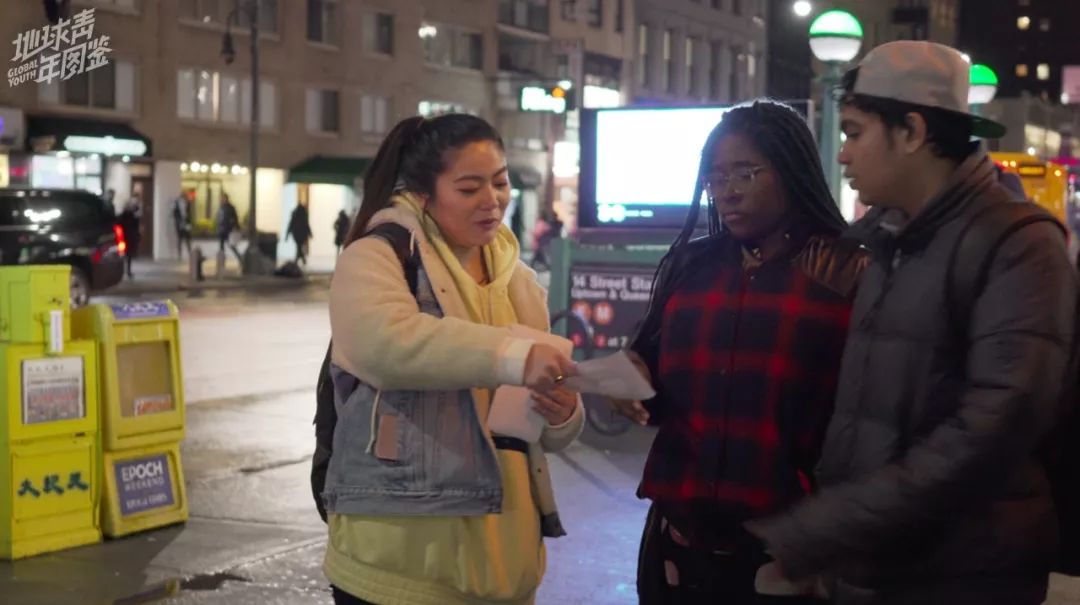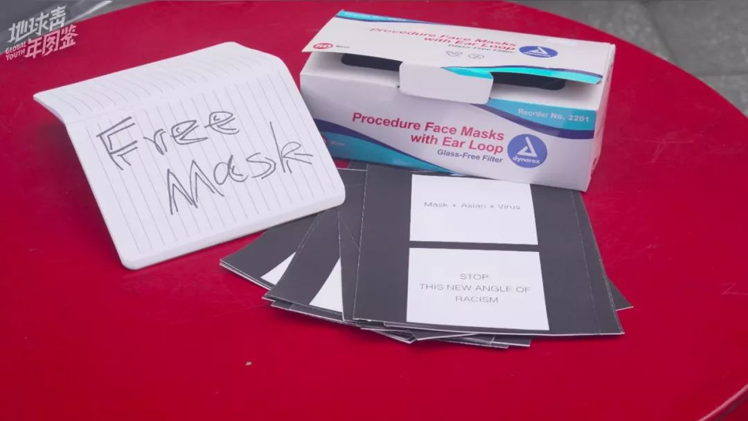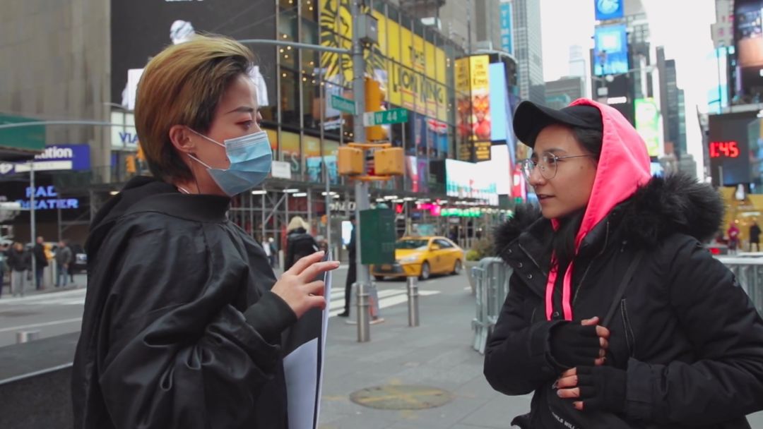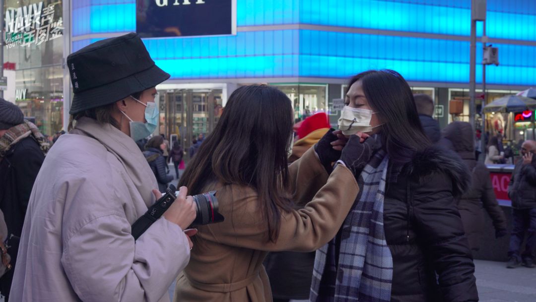 第一次去时代广场做活动的时候,她戴着口罩,站在高台上,举着写有标语的大牌子,每当有人停下来,她就向他们解释,让他们知道有这样一个错误的观念:有一些不怀好意的人用病毒作为借口,来做一些歧视亚裔的事情。她还会送他们一个口罩,为他们拍下佩戴口罩的肖像照片,并将整个过程拍摄成纪录片。